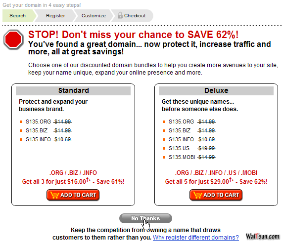 6、选择使用“支付宝”付款。使用“支付宝”付款要比VISA信用卡要安全得多。VISA信用卡在国外消费只需要信用卡卡号、信用卡正面的英文姓名和背后的3个数字即可,无需实卡,每次交易不需要输入密码。一旦输入你的信用卡信息,商家将来可以无需征求你的同意自行扣款(例如当你选择自动续费时,域名到期商家就会自动从你的信用卡扣款续费。),如果信用卡信息被盗,后果更是不堪设想。