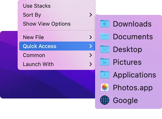 Mac上完全可自定义的查找器菜单。使用最好的Mac右键单击增强器来帮助自定义查找器的右键单击菜单,然后提高macOS上的工作效率。